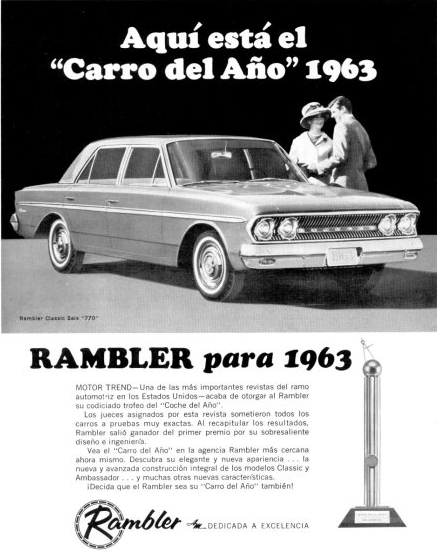 Pocos años antes que Industrias Kaiser Argentina diera en la tecla en su segmento de coches grandes con el Torino, el Rambler era su caballo de batalla con su diseño vanguardista y notorio equipamiento, empezamos con la publicidad del mismo para recrear la fantasía, la magia prometida y así contemplar el modelo esperando sacar tal vez un conejo de la galera.