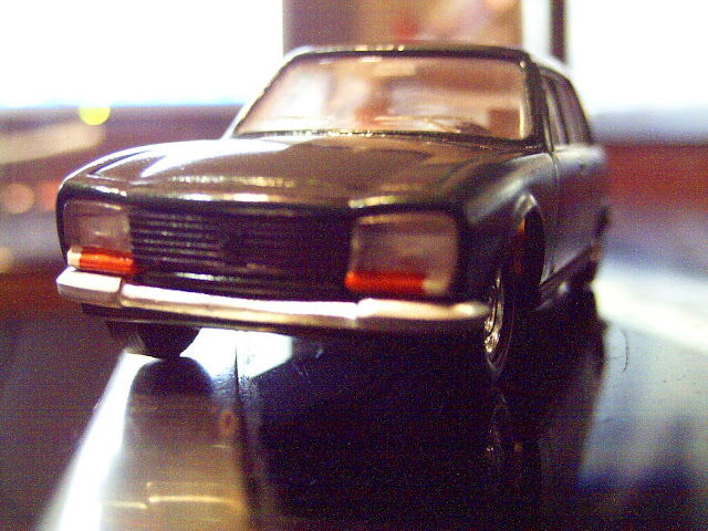 Ubicado a principios de la excelencia, es decir, cuando los modelos por los años 70s buscaron realismo sumando complejidad, está uno de mis 504, el primero que muestro de uno de los modelos más emblemáticos de la marca. A posteriori mostraré como ejecutaron este modelo otros fabricantes, pero a posteriori, hablando en meses... no me miren feo, resulta que tengo una relación muy estrecha con éste auto y se tornaría monótona la seguidilla de entradas sobre el mismo referente.
