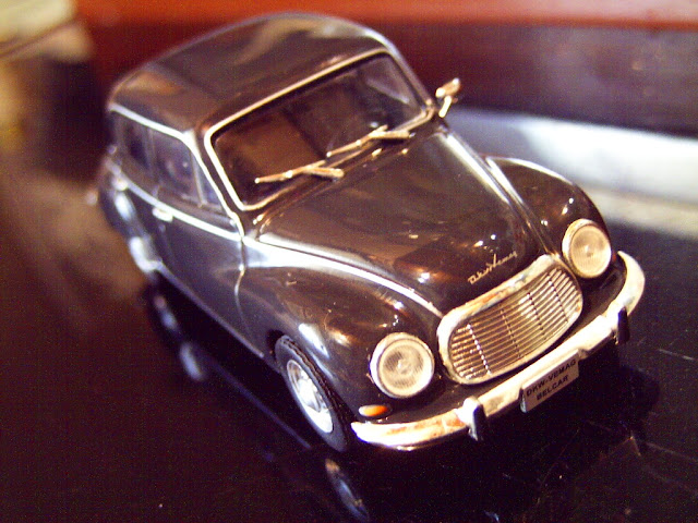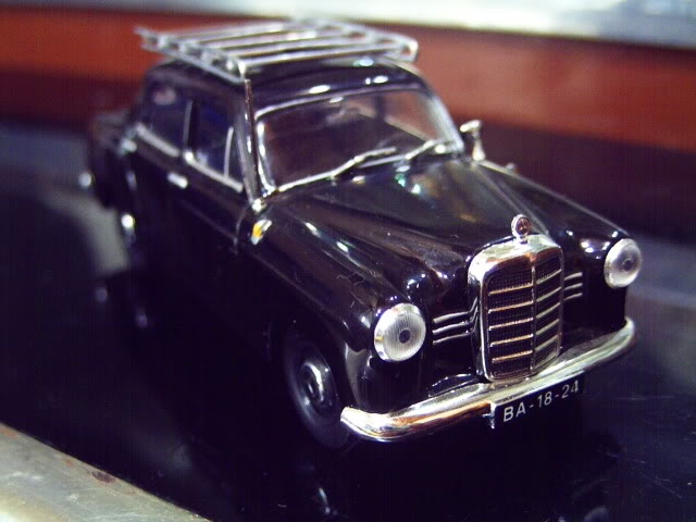 A la izquierda un modelo harto conocido, el Peugeot 203 de IXO (Hecho en China) para la editorial Altaya y su colección de Taxis del Mundo, quizá el 203 más conocido en escala, producido por miles y de bajo costo llegó a muchas colecciones (como la mía por que no) sin mucha planificación, vamos, no creo que tanta gente estuviera deseosa de tener el 203 taxi de Casablanca de 1960... pero los pocos pesos que vale hacen que uno le pegue el manotazo.